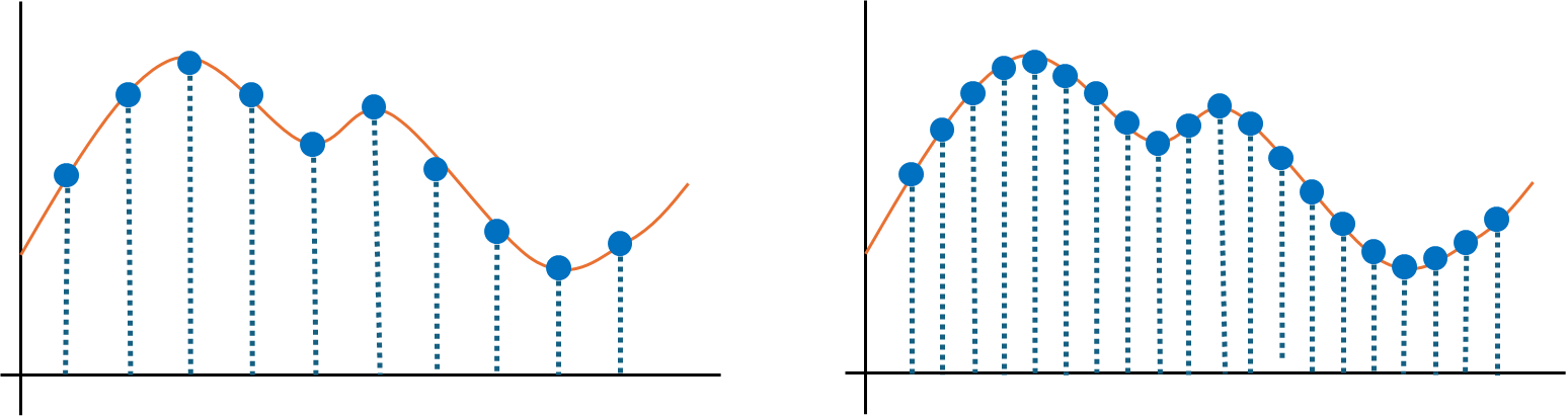 샘플링 주기를 높이면 더 자주 샘플링을 할 것이고, 더 자주 샘플링하면 할 수록 원신호와 더 가까워 질 수 있습니다.